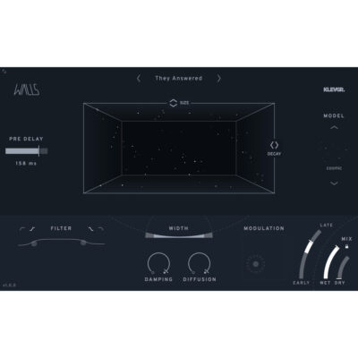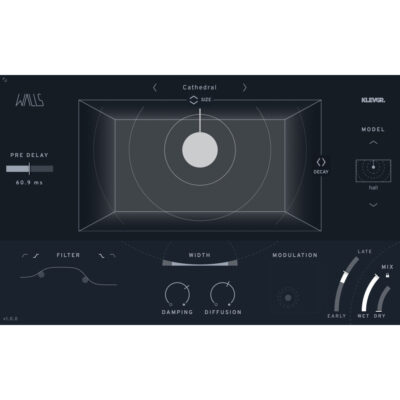 Klevgrand Walls is a unique algorithmic reverb and spatial effect that redefines how space can shape sound. Instead of simply mimicking real-world rooms, Walls gives you the creative tools to design spaces that stretch, tilt, and reshape around your audio—blending grounded realism with abstract, evolving textures.